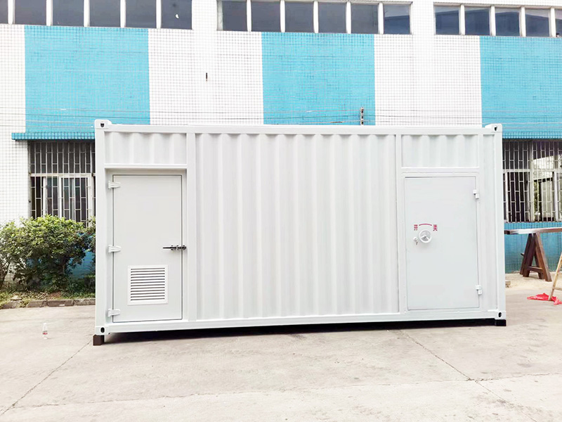 At the same time, the container also built explosion-proof partition board, material is 9.5 mm x 2 double-layer explosion-proof steel plate (including fiber mud), the partition surface is made of galvanized steel material, fire resistance limit of 4 to 6 hours, greatly strengthen the impact resistance of the container, but also meet the requirements of internal equipment fire explosion-proof. With the supporting explosion-proof door (1200 x 2100 mm), the main material is steel metal, can withstand 1000 (kJ/㎡) pendulum impact.