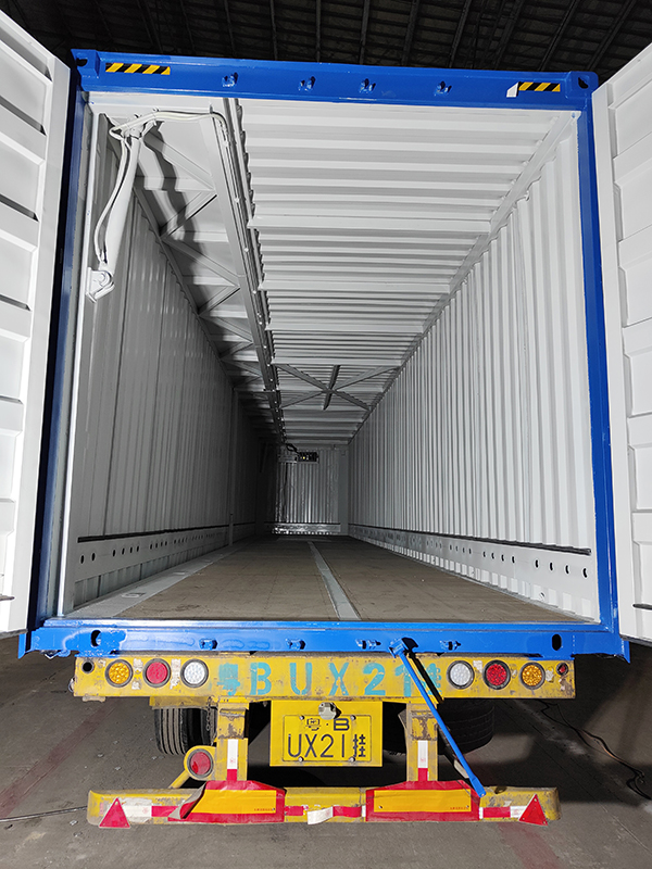 It is understood that the outside dimension of the container is 16160 x 2938 x 3168 mm, the length is close to 53 feet shipping container, single side full wingspan design, retain the container back door and wooden floor. With customized hydraulic cylinder and line, the whole container is made of high-strength steel material, to maximize the realization of lightweight, reduce the loss of wingspan switch and transportation. In addition, the container is arranged in the middle of the column, so as to ensure the strength of the container.