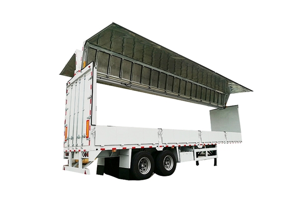 1. Wing open trailer use hydraulic system to control both wings.2. This kind of trailer is easily to load and unload goods from both sides.